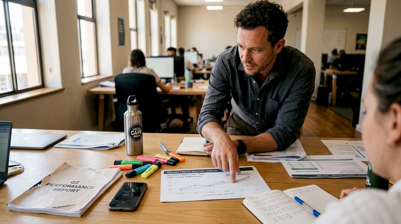 Organic search drives more than half of all website traffic globally, yet most South African SMBs still measure SEO success by rankings alone. That single blind spot costs businesses real revenue every month. When your report only shows keyword positions, you are missing the full picture of what SEO actually does for your bottom line. True SEO reporting connects search activity to business outcomes: leads generated, calls received, and rands earned. This guide breaks down exactly what to track, which tools to use, how to localise your reports for the South African market, and how to avoid the mistakes that keep most SMBs stuck in a cycle of data without direction.